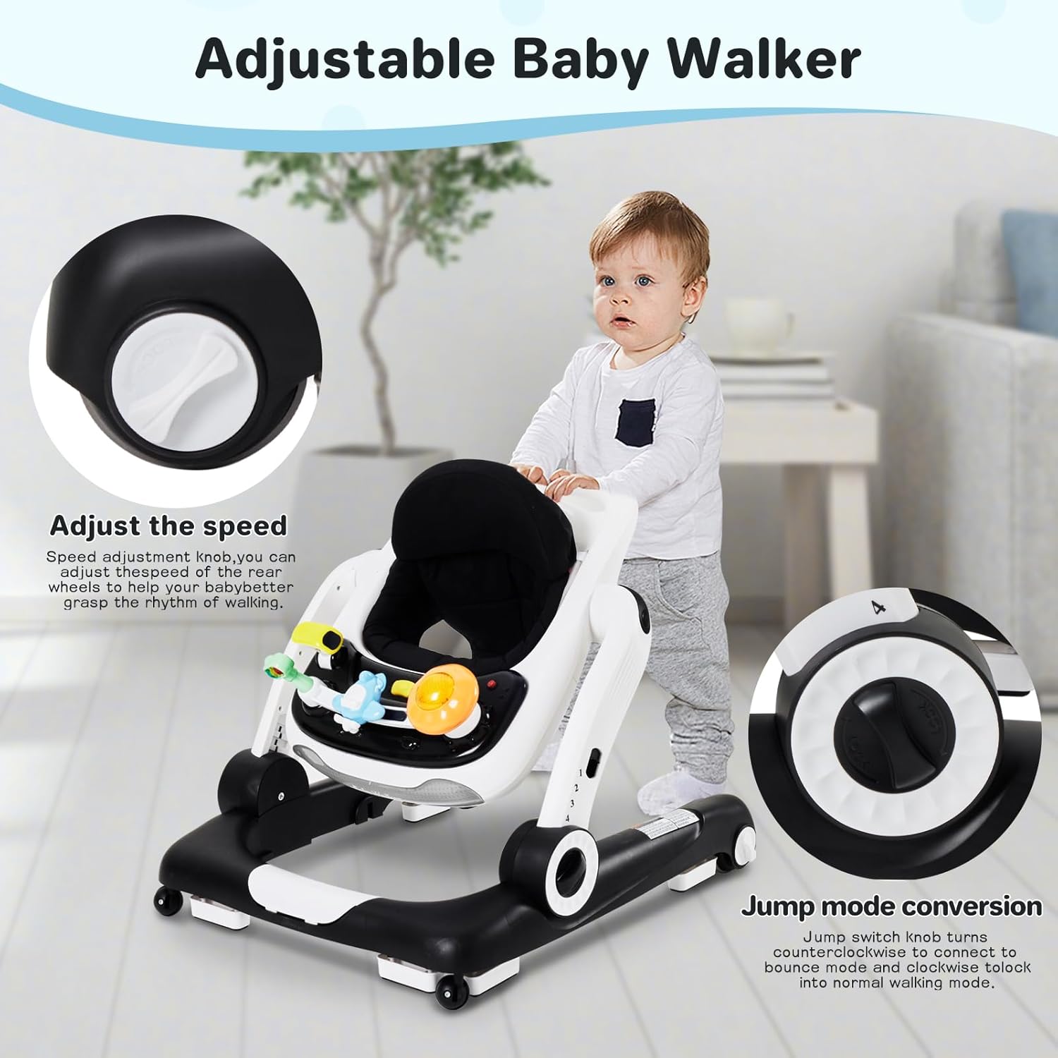 - 4 Adjustable Heights: The baby walkers for boys has 4 adjustable height to switch, walker for baby is suitable for tall and short baby and grow with babies. The breathable seat cover will give baby a comfortable experience. The walker baby is perfect for baby boy and girl